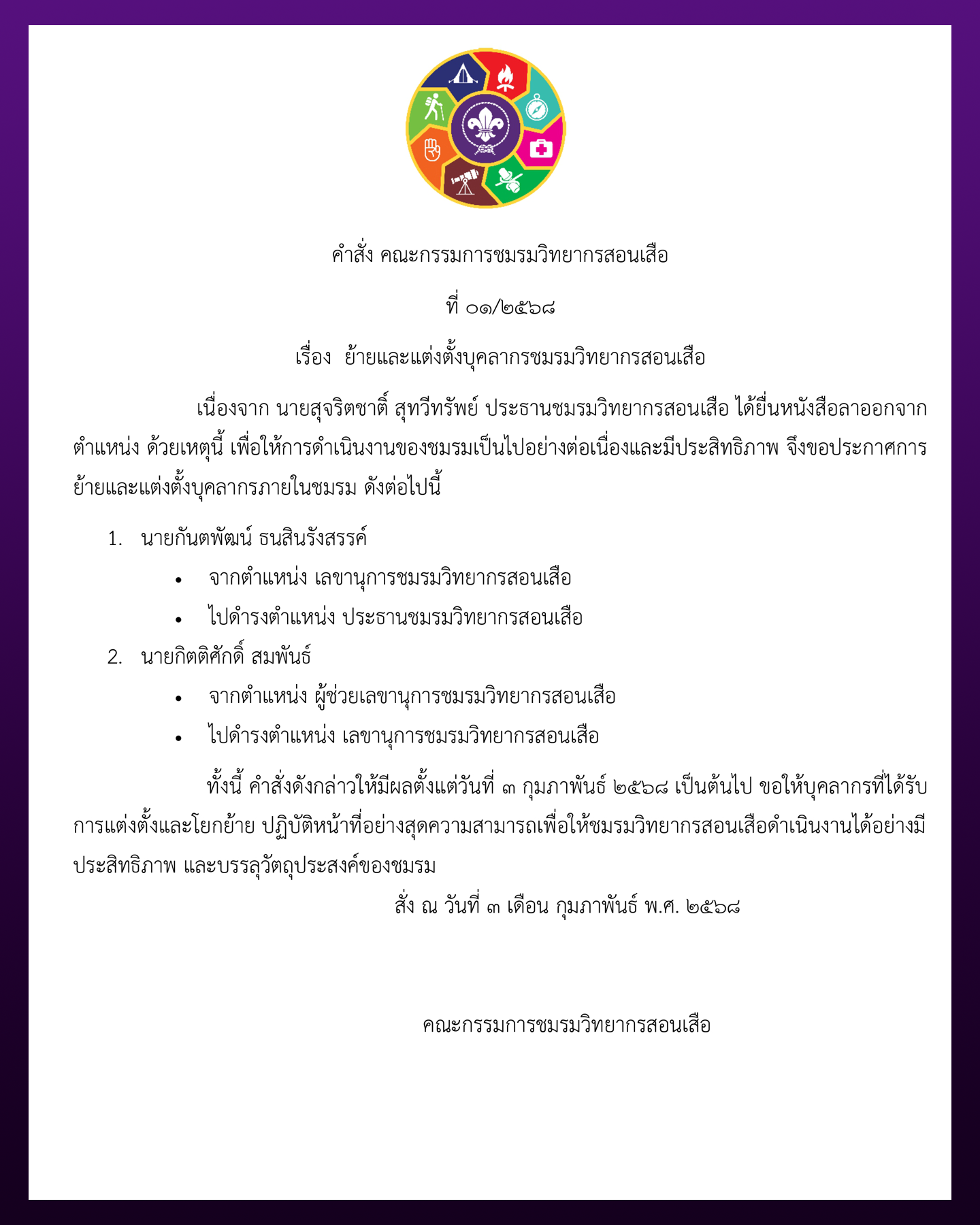ข่าวแจ้งวิทยากรสอนเสือ
